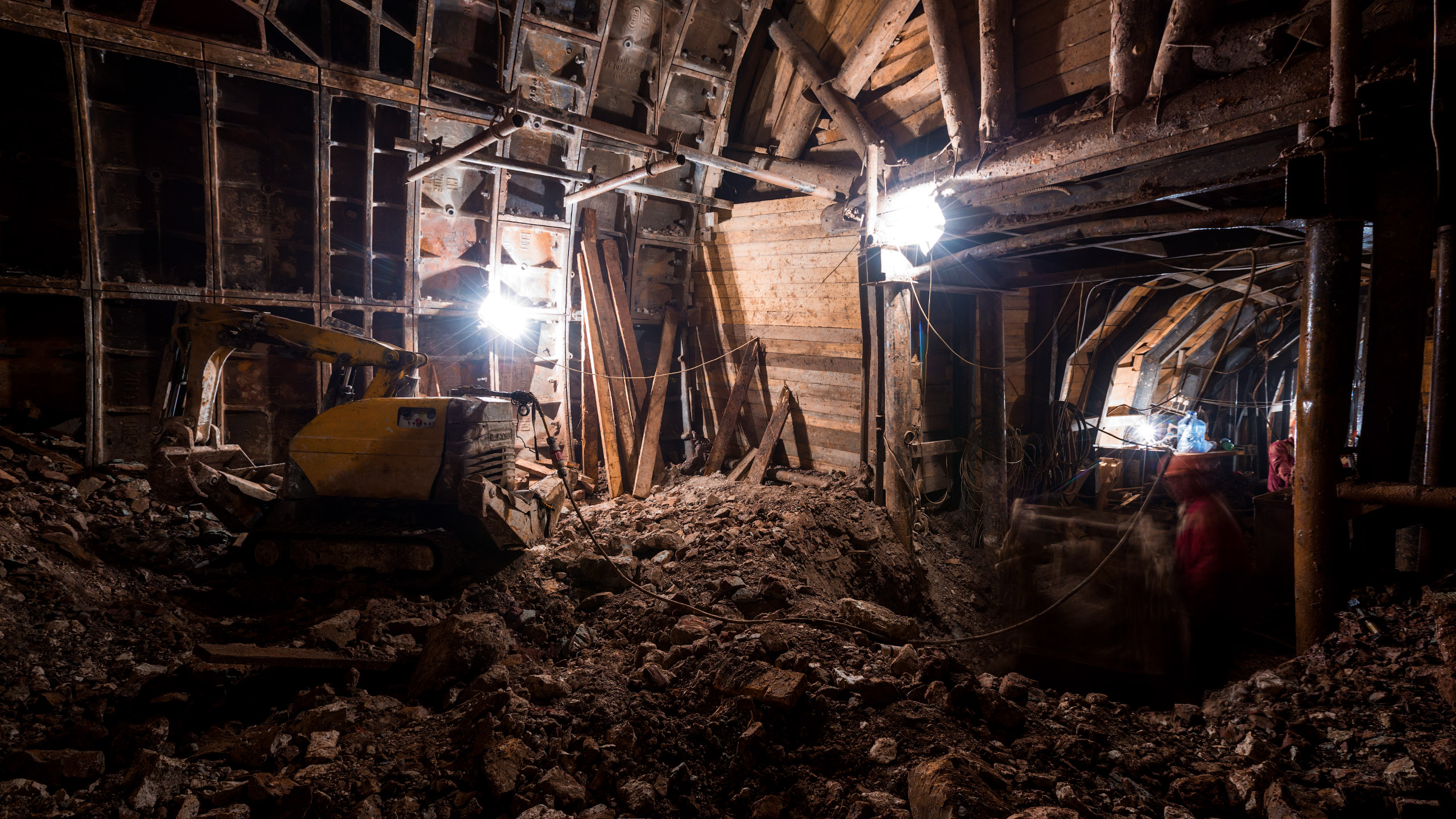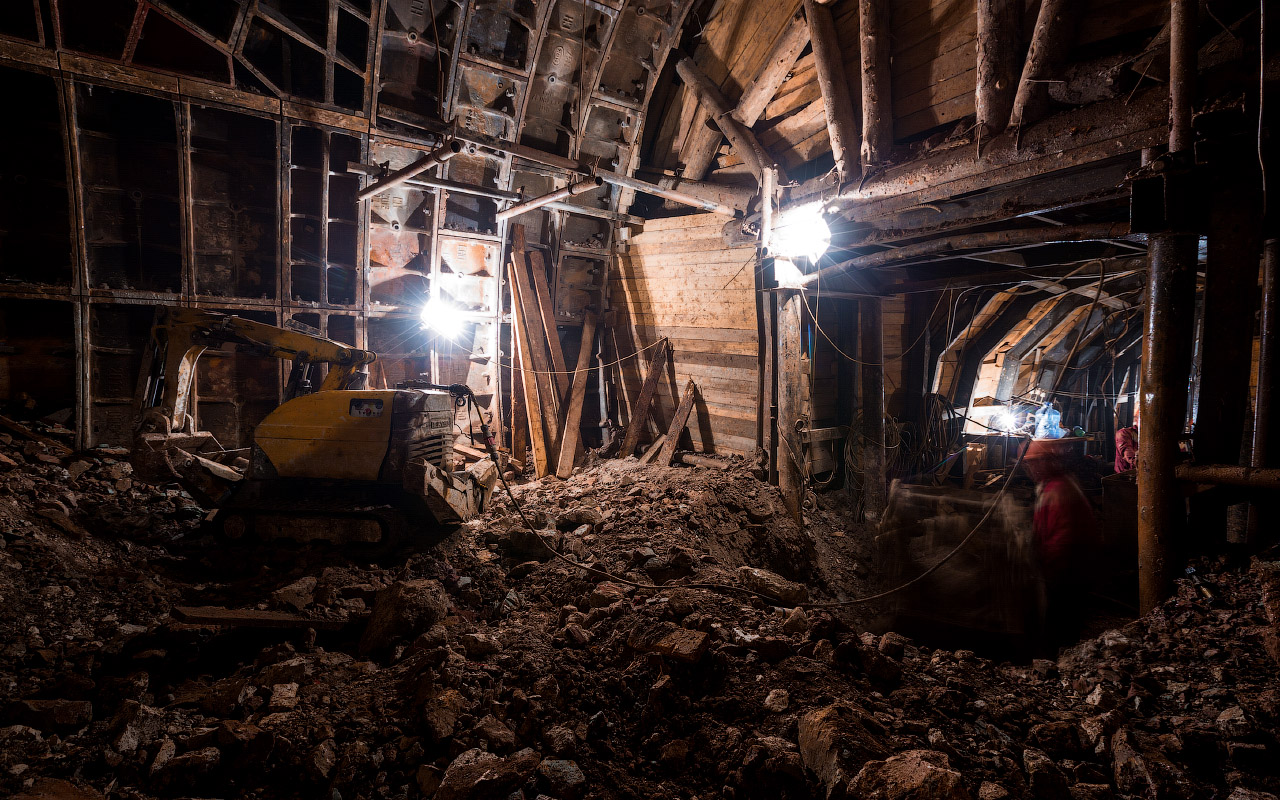 17. Начало длинной штольни к центральному залу. Потом на месте этой штольни будет раскрыта натяжная камера эскалатора.