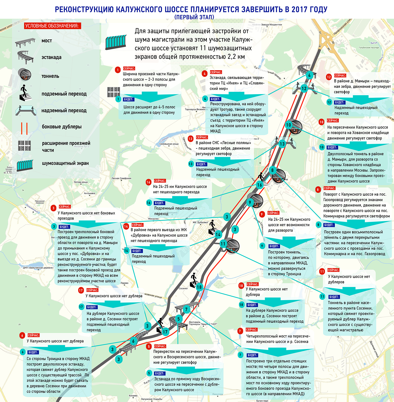 В 2015 году в городе появилось больше 100 километров новых дорог, больше 30 искусственных сооружений, сделали десяток пешеходных переходов. Наконец-то завершено строительство Алабяно-Балтийского тоннеля!